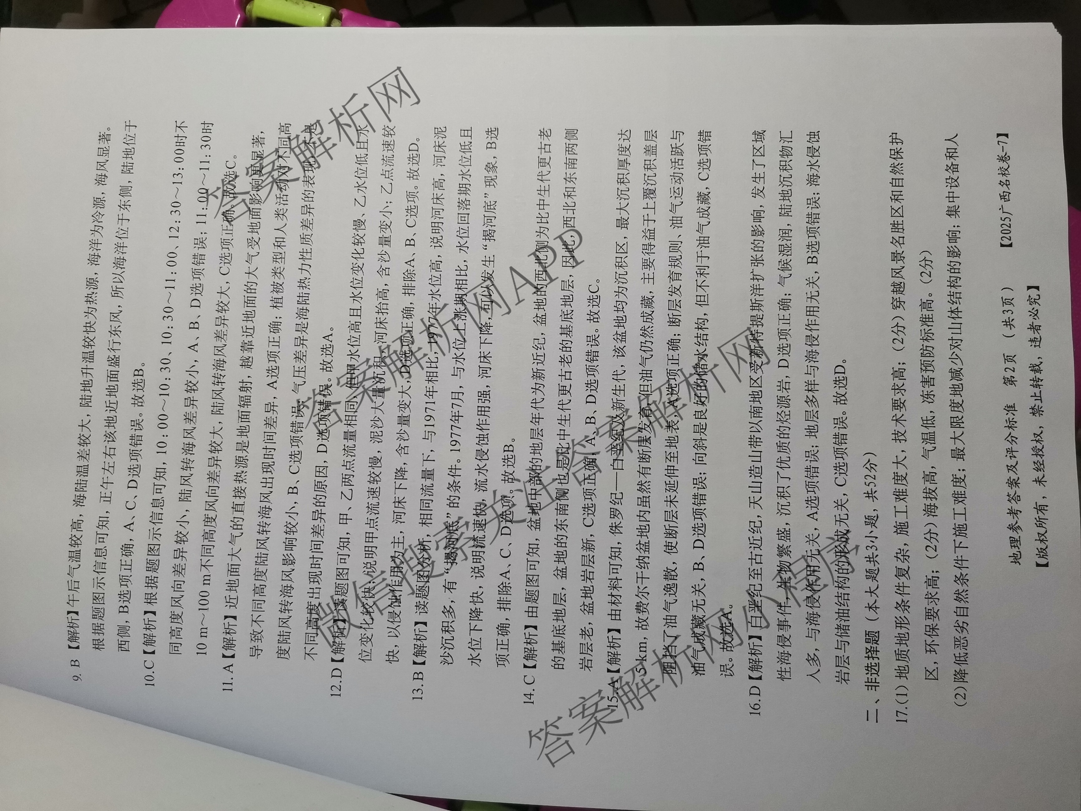 5、2025年广西名校高考模拟试卷预测卷[2025广西名校卷-7]: 含物理 地理 日语试卷解析地理试题及答案