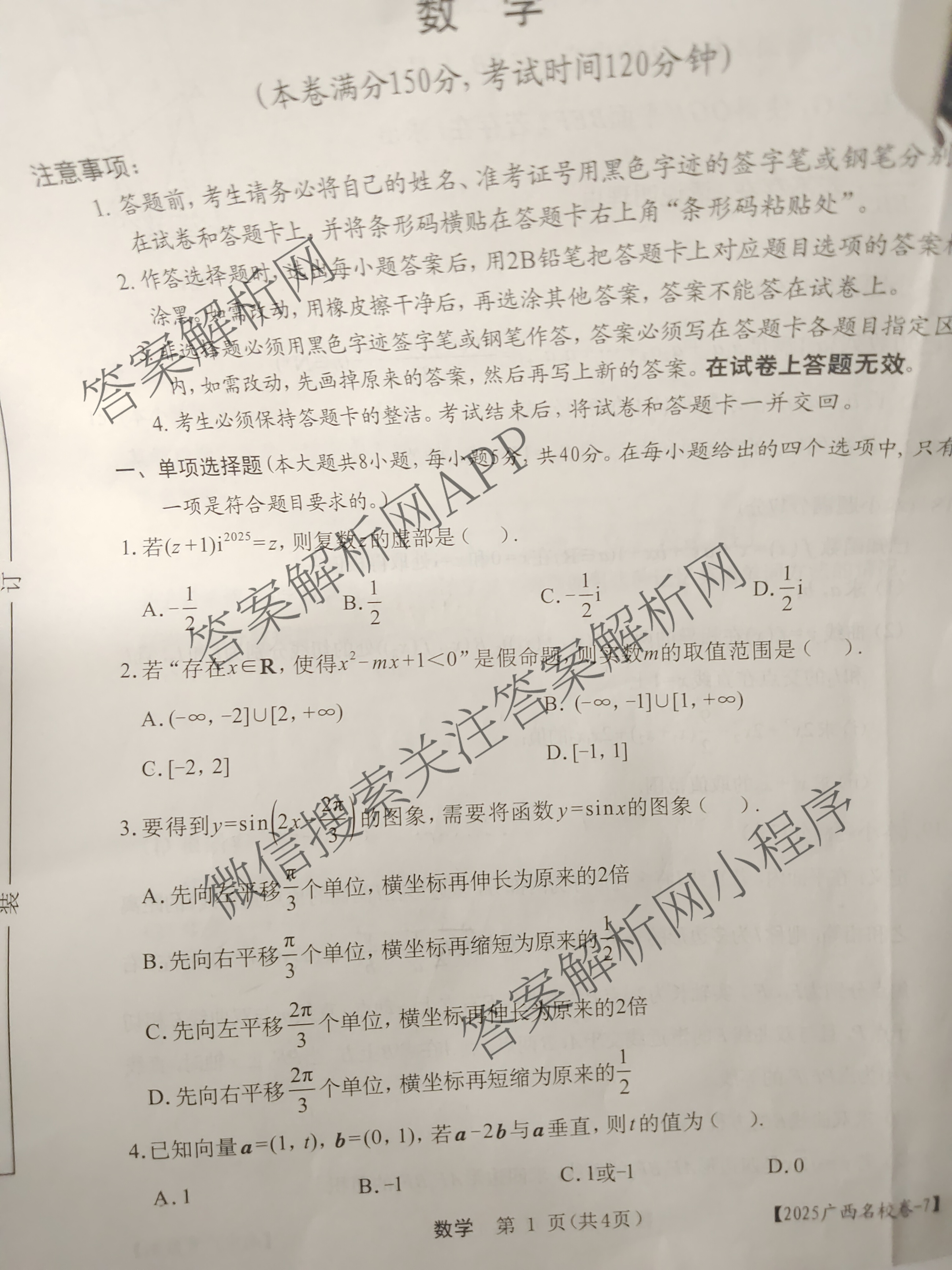 2025年广西名校高考模拟试卷预测卷[2025广西名校卷-7]: 含物理 地理 日语试卷解析即将拉开帷幕
